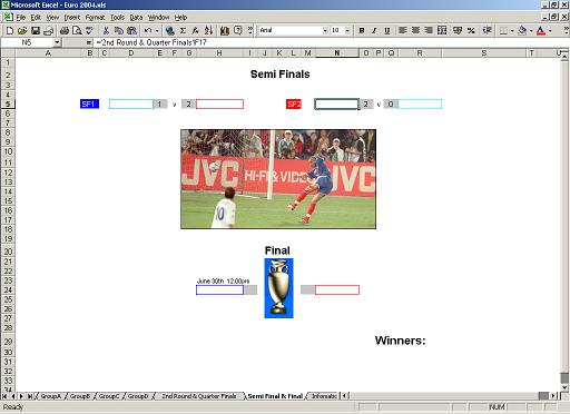 Spreadsheets that follow major football championship finals, from the group stages through to the final itself. You can either just fill in the results as they happen and see how the tournamant unfolds or put your predictions how see how it could possibly happen.